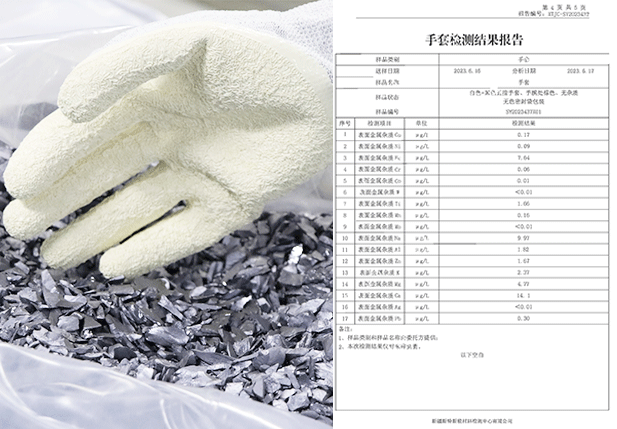 手套經(jīng)過(guò)特殊工藝處理,通過(guò)驗(yàn)證將手套放置氮?dú)夤癞?dāng)中80H,手套接觸產(chǎn)品無(wú)任何氧化情況,經(jīng)權(quán)威機(jī)構(gòu)檢測(cè)氯元素及硫元素完全符合接觸電池片標(biāo)準(zhǔn),且不會(huì)在電池片上面留下任何指印。